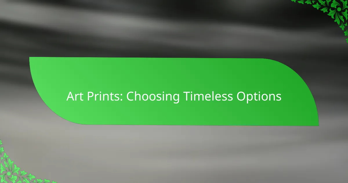 The best art print styles for timeless decor include classic oil paintings, black and white photography, abstract art, botanical prints, and vintage posters. These styles not only enhance the aesthetic appeal of a space but also offer versatility and longevity in design trends.